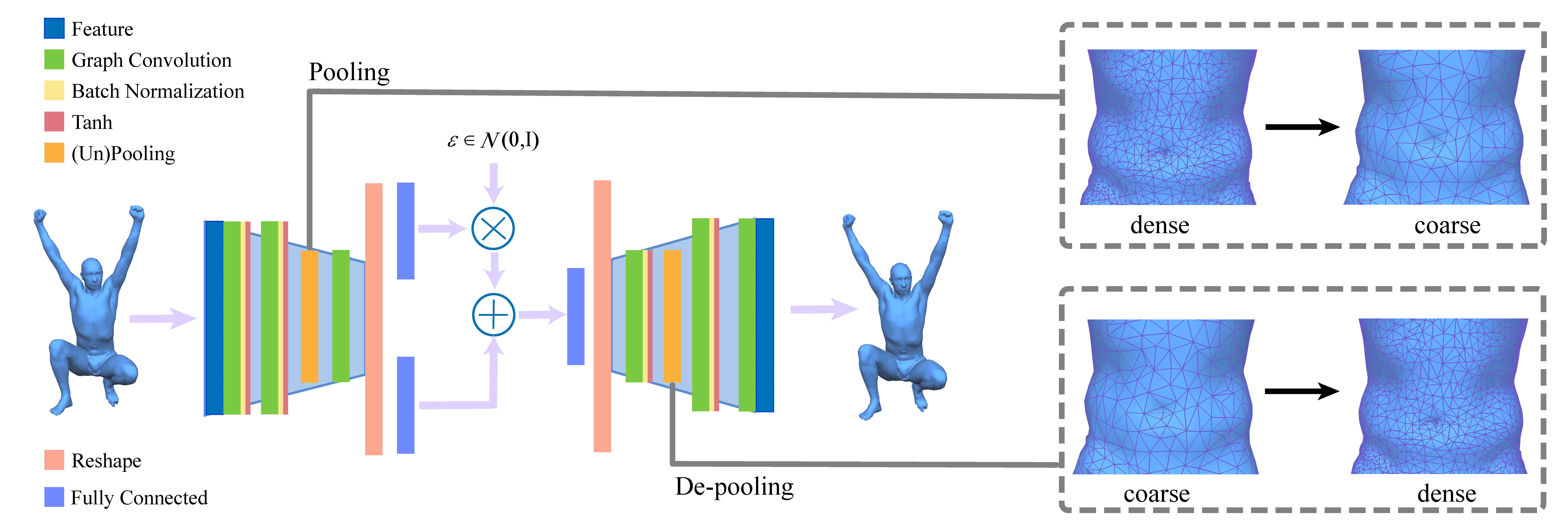 Mesh Variational Autoencoders with Edge Contraction Pooling