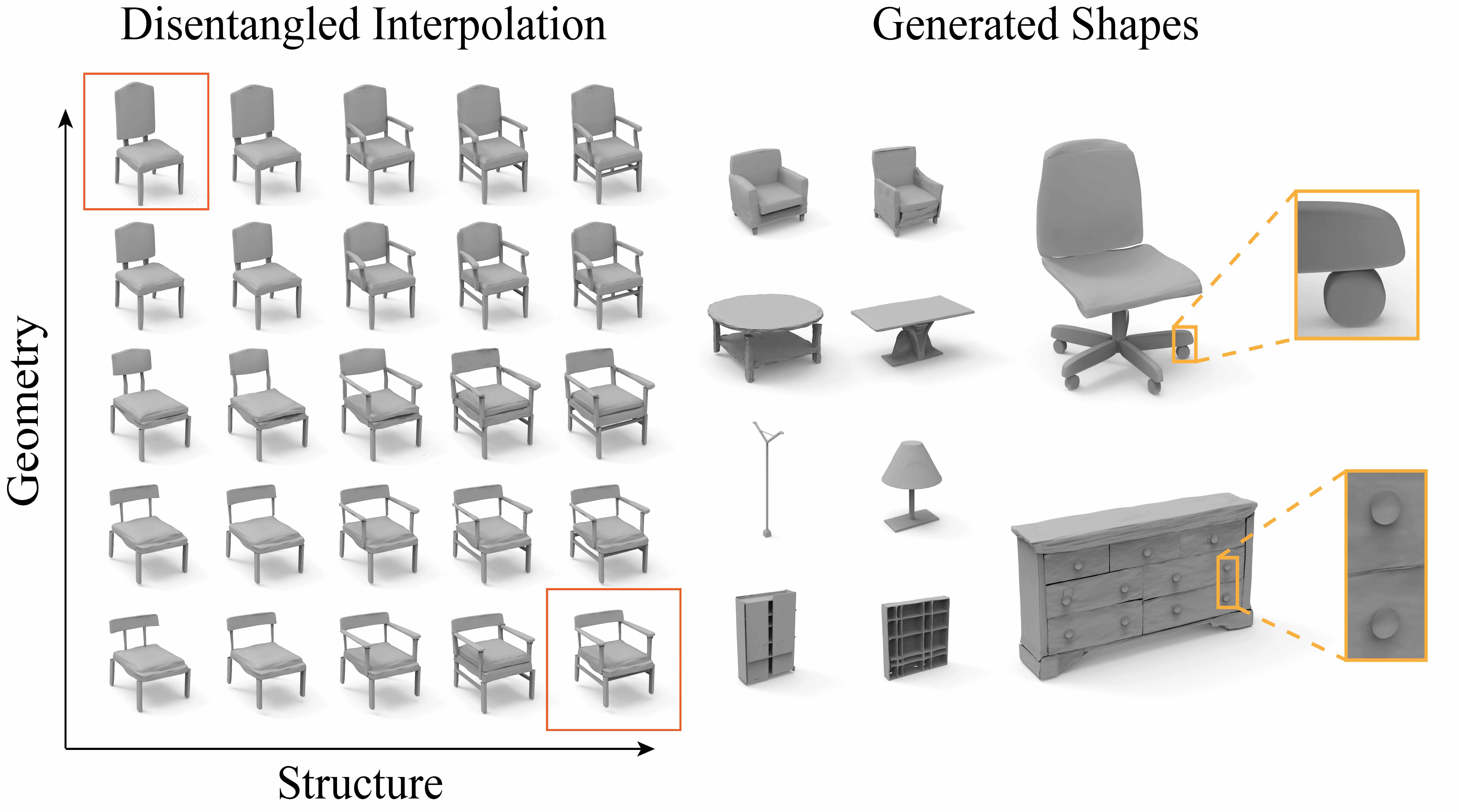 DSG-Net: Learning Disentangled Structure and Geometry for 3D Shape Generation